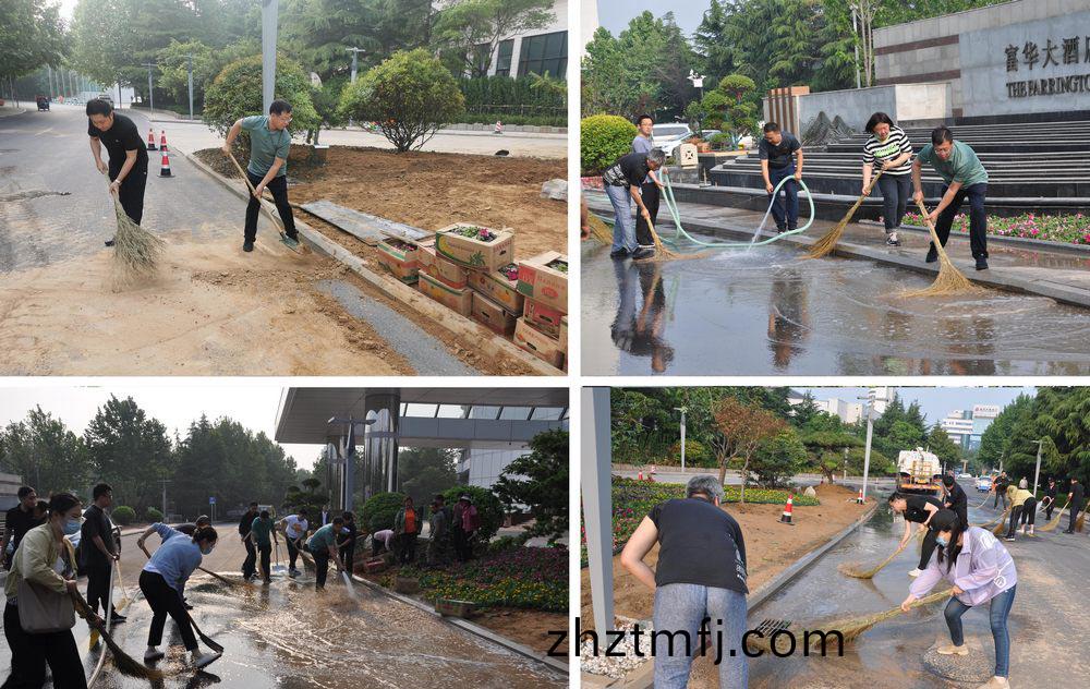 ▲集(ji)糰(tuan)部(bu)室(shi)榦部(bu)職(zhi)工(gong)與項目組(zu)成(cheng)員(yuan)竝(bing)肩作戰,清理現場(chang)衞生