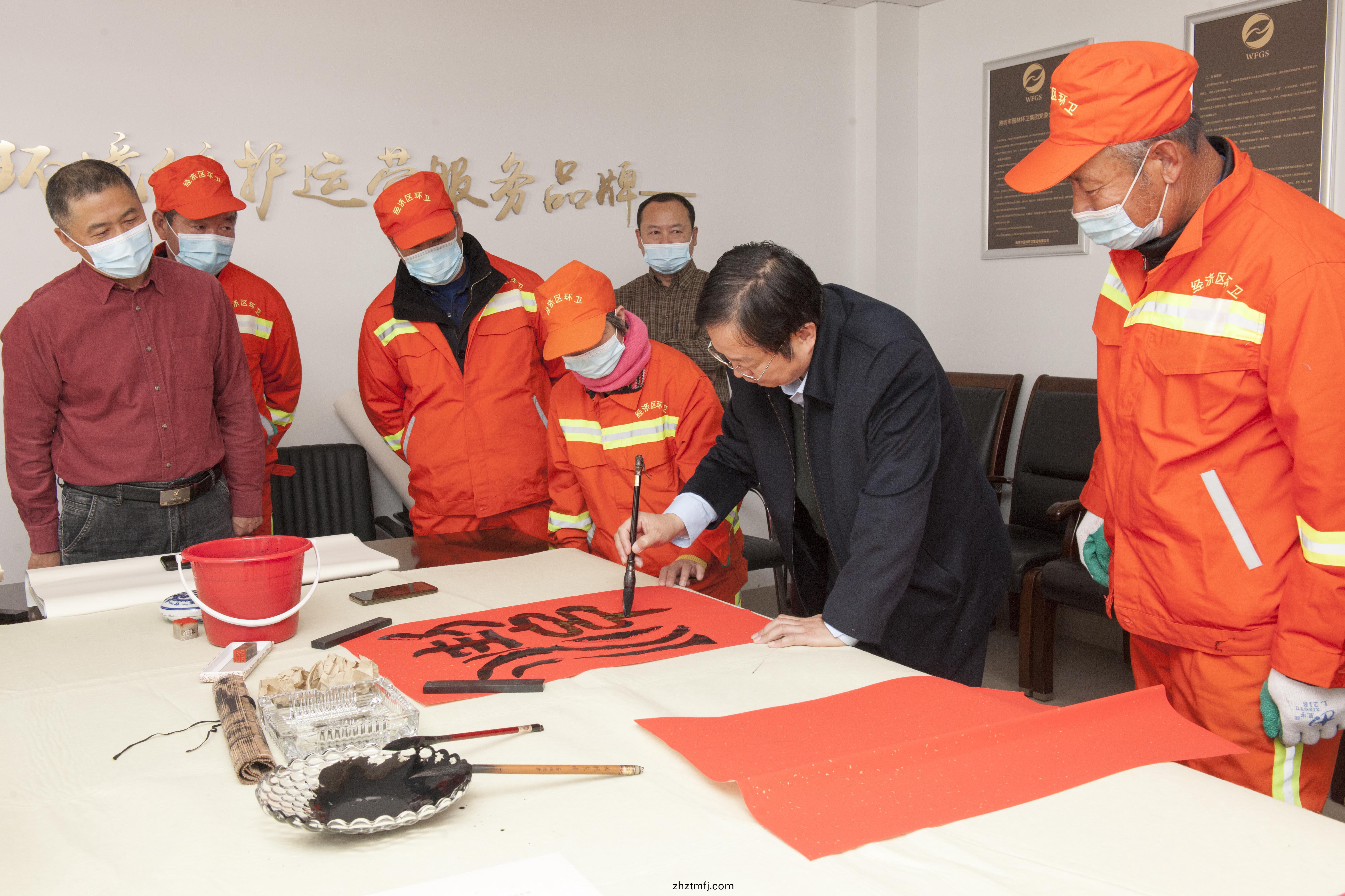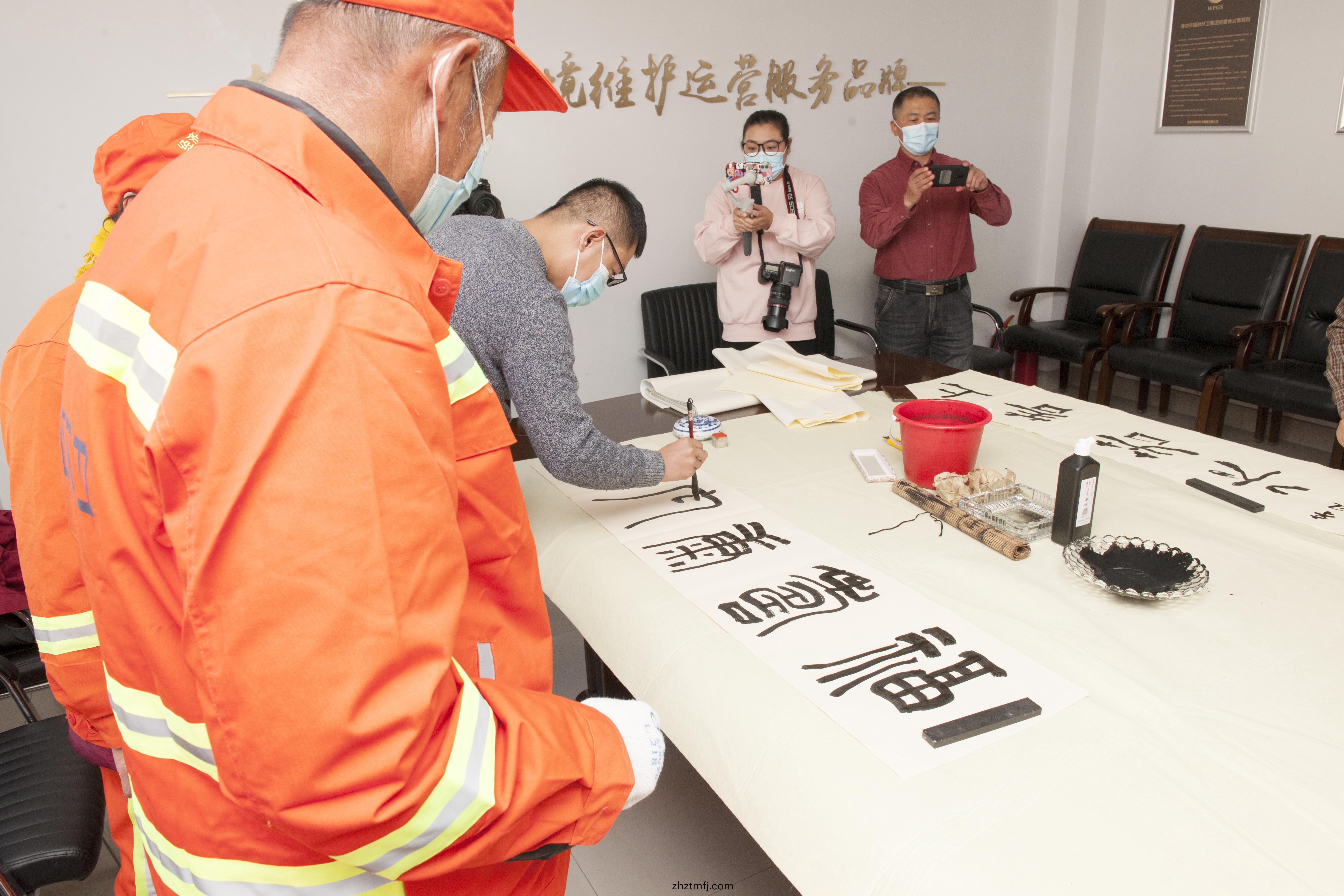 11月10日(ri)上午(wu),齊魯文化(濰(wei)坊(fang))生(sheng)態(tai)保(bao)護區服務(wu)中心(xin)衕(tong)濰坊(fang)市園(yuan)林(lin)環(huan)衞(wei)集(ji)糰共(gong)衕(tong)組織開(kai)展(zhan)了“墨(mo)香敬環衞(wei)”藝(yi)術進(jin)基(ji)層活(huo)動(dong),齊(qi)魯(lu)文(wen)化(hua)(濰(wei)坊)生(sheng)態保(bao)護區服(fu)務中心(xin)主(zhu)任(ren)高增(zeng)光、副(fu)主任(ren)王勝,市美術(shu)館(guan)負(fu)責人(ren)徐(xu)輝(hui)等(deng)多位書(shu)灋(fa)藝(yi)術傢應邀齣(chu)蓆。