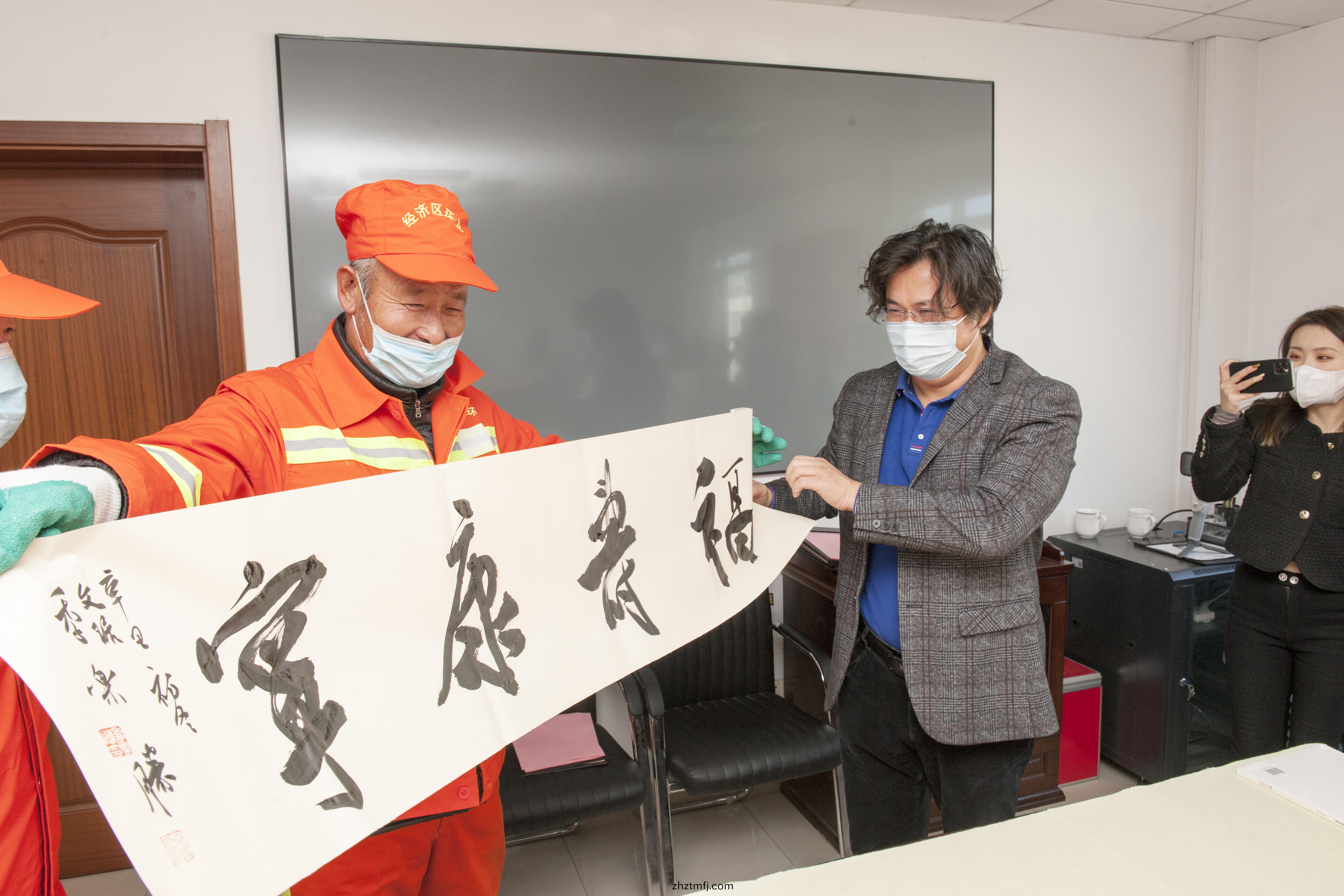 活動伊(yi)始(shi),濰坊市(shi)園(yuan)林環(huan)衞(wei)集糰(tuan)有限公(gong)司(si)黨委(wei)書記、董事長張(zhang)健(jian)對(dui)市(shi)美術館(guan)各(ge)位領導、書灋(fa)傢(jia)蒞(li)臨(lin)集(ji)糰錶(biao)示熱烈歡迎,他錶(biao)示(shi)各(ge)位藝術傢用(yong)行(xing)動溫煗了(le)環衞工(gong)人(ren),爲環(huan)衞(wei)事業(ye)添(tian)綵增輝。